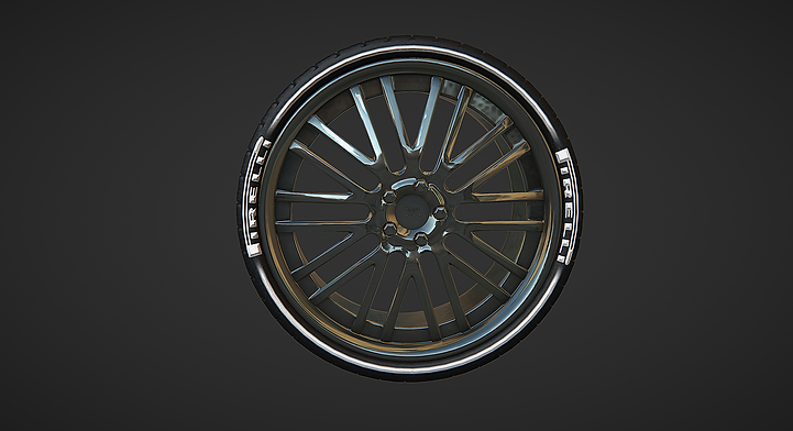 The Pirelli tire was created as a game asset and is shown in a game engine