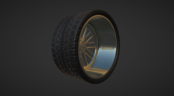 The tire below was created within Maya and using 3Do engine and Skechfab to render images. The side wall and tread are projected on as maps. Using normal map magic I can create realistic bump without modeling the tread making a faster rendering tire for higher frame rate with in a video game or a real time simulation.